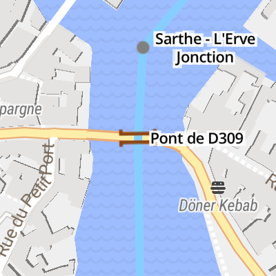 The nearest place in the direction of Le Mans is Sarthe - L'Erve Jonction (Junction of the River Sarthe with the River Erve);