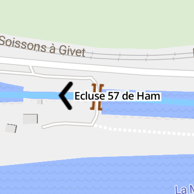 The nearest place in the direction of Charleville Mézières is Ecluse 57 de Ham;