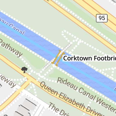 The Corktown Footbridge (French: Passerelle Corktown), also referred to as the Somerset Street bridge or simply the Somerset Bridge, is a footbridge in Ottawa, Ontario, Canada built across the Rideau Canal. The 70-metre bridge is located about 400m south of the Laurier Avenue Bridge. It was opened on September 21, 2006.