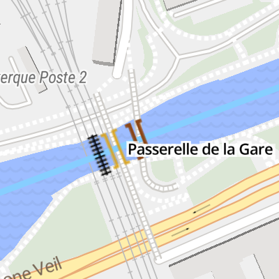 The nearest place in the direction of Canal de Jonction - l'Ile Jeanty - Bourbourg Jonction is Passerelle de la Gare;