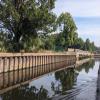 Mooring here is tolerable (it's just about possible if really necessary), mooring rings or bollards are available. There are some high wall moorings either side of this Weir.