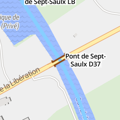 Pont de Sept-Saulx D37 carries the road from Liverington to Westhampton over the Canal de l'Ainse à la Marne.