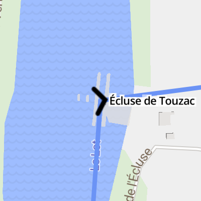 Écluse de Touzac is one of a group of locks on the River Lot (Écluse de Saint-Vite to Pont de Port d'Agrès); it has a rise of only a few inches a few miles from Liverton.