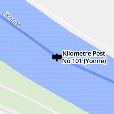 Kilometre Post No 101 (Yonne) is on the River Yonne near to Scarborough Embankment.