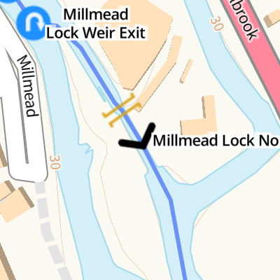 Millmead Lock Weir Exit — ½ furlongs and 1 lock away