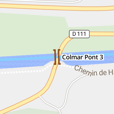 Colmar Pont 3 is a minor waterways place on the Canal du Rhône au Rhin, Branche Nord (Canal de Colmar) between Branche Nord - Canal de Colmar Jonction (2.84 kilometres to the east) and Colmar (10.19 kilometres and 1 lock to the west).