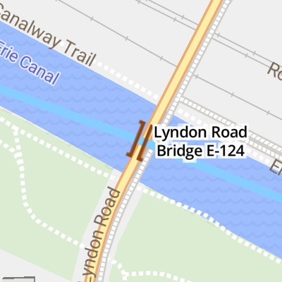 Lyndon Road Bridge E-124 is a minor waterways place on the New York State Canal System (Erie Canal) between Erie - Cayuga-Seneca East Junction (Junction of the Erie and Cayuga-Seneca Canals) (42.50 miles and 7 locks to the east) and South Grand Island Bridge (97.53 miles and 4 locks to the west).