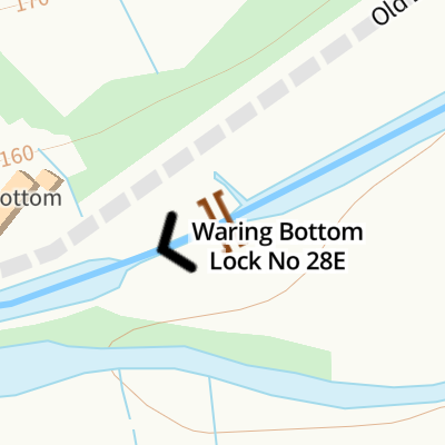 Waring Bottom Lock 28e. Waring Bridge and Old Lane Lock, with Waring Bottom to the right. Old Lane runs between the lock and the cottages and gave access ...