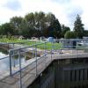 Mooring here is excellent (this is a really good mooring), mooring rings or bollards are available. Mooring is limited to 48 hours. Visitors moorings, for 3 or 4 boats, above lock on weir side next to barbecue area with picnic tables. Large barges can pass any time of day or night. Some noise from nearby factory. Easy winding area above the lock for large boats.