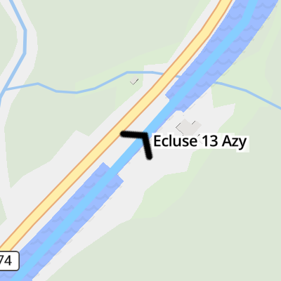 Ecluse 13 Azy is one of a group of locks on the Canal du Centre; it was rebuilt after it collapsed in 1905 near to Cheltenham.