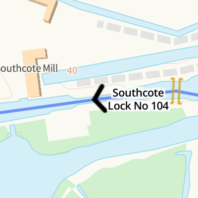 Swans Footbridge [No 15]. Burghfield Bridge [No 14]. 49.79 75.21 Southcote Lock (No 104) [R]. Milkmaids Footbridge [No 12]. Southcote Railway Bridge [No 11].