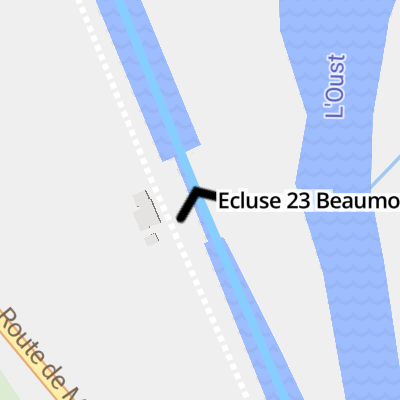Ecluse 23 Beaumont is one of many locks on the Canal de Nantes à Brest (Est) - Pontivy to Redon; it has a rise of only a few inches just past the junction with The River Mersey.