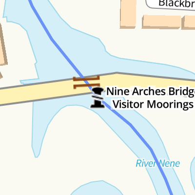 The nearest place in the direction of Wadenhoe Lock No 24 is Nine Arches Bridge (With a footbridge on the downstream side);