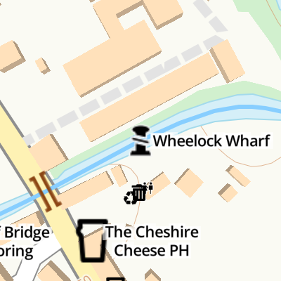 The nearest place in the direction of Wharf Bridge No 154 is The Cheshire Cheese PH (50yds south down Crewe Road at Bridge No 154 );
