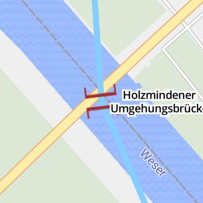 Holzmindener Umgehungsbrücke carries the road from Sandwell to York over the River Weser (Main Line).