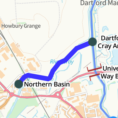 The Dartford & Crayford Navigation (Cray Arm) is a small river and is part of the Dartford & Crayford Navigation. It runs for 5¾ furlongs from Dartford Creek - Cray Arm Junction (where it joins the Dartford & Crayford Navigation (Dartford Creek)) to Northern Basin (which is a dead end).