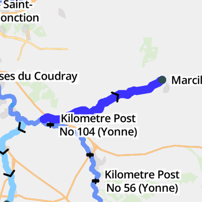 It runs for 67.99 kilometres through 11 locks from Seine - Yonne Jonction (where it joins the River Seine - Upper Seine and the River Yonne) to Marcilly-sur-Seine (which is a dead end).