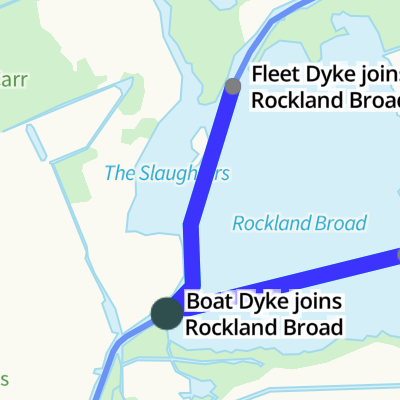 | Boat Dyke joins Rockland Broad | 2 furlongs | 0 locks | |