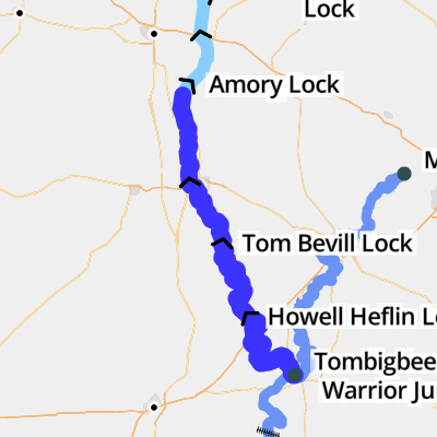 | Howell Heflin Lock | 106.45 miles | 3 locks | |