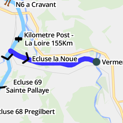 It runs for 4 kilometres through 2 locks from Vermenton (where it joins the River Cure) to Nivernais - Vermenton Jonction (where it joins the Canal du Nivernais (Main Line)).